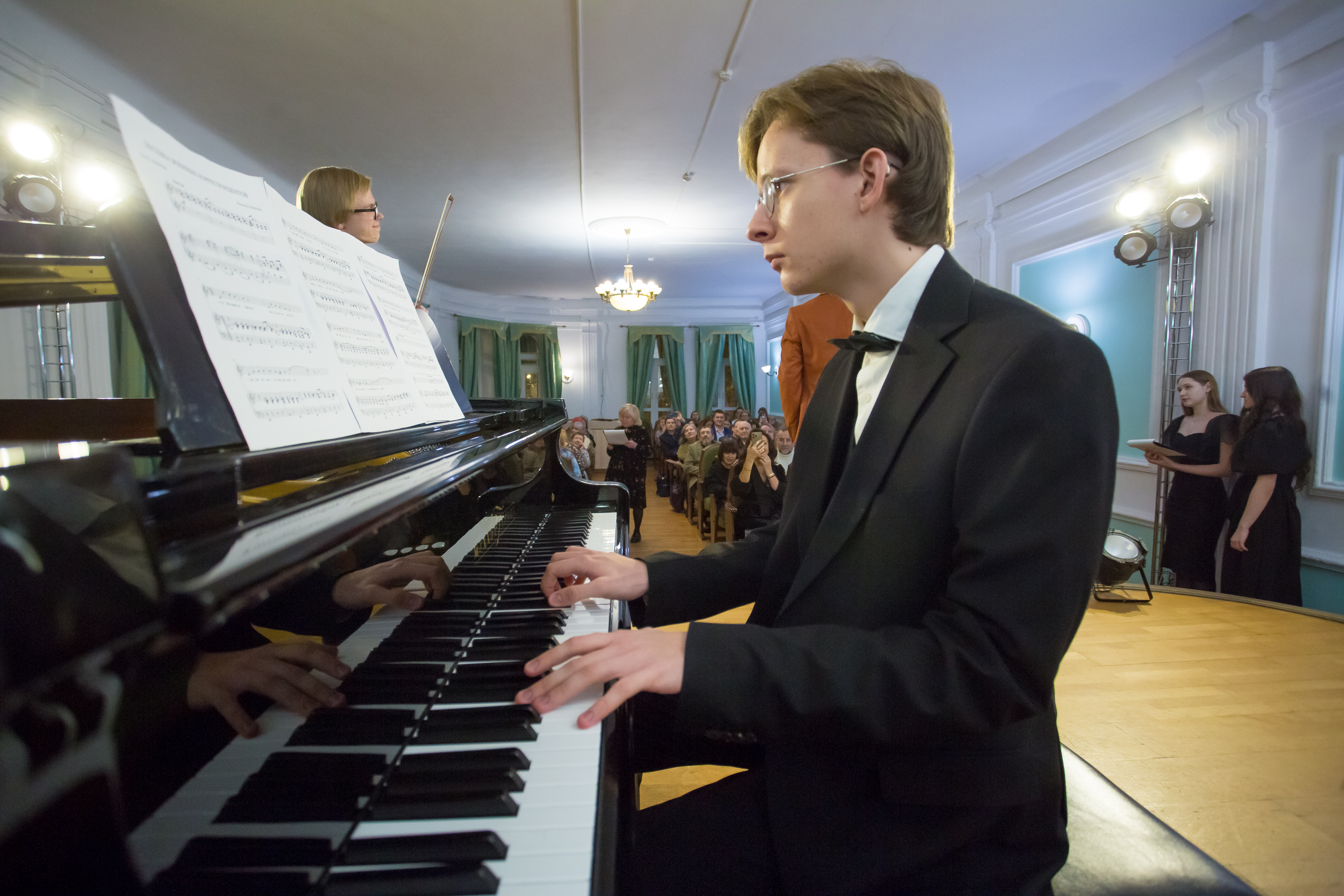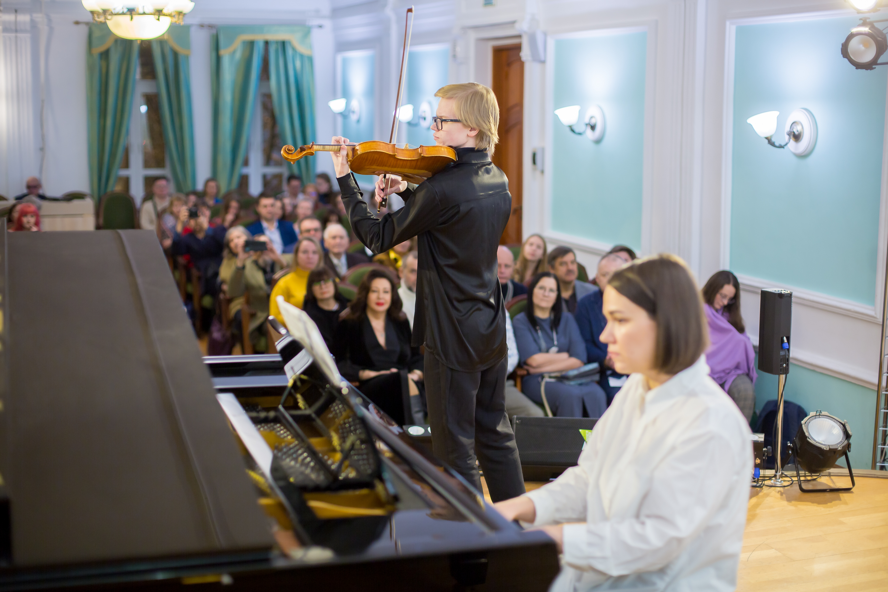 Классическая музыка в исполнении студентов Музыкального колледжа Сибирского государственного института искусств им. Д. Хворостовского, победителей международных и всероссийских конкурсов, стипендиатов фонда поддержки молодых талантов «Русский стандарт», лауреатов премии Главы города и конкурса «Молодые дарования России» скрипача Ильи Еремеева (класс профессора Е. С. Царевой, концертмейстер Вера Пономарева) и пианиста Николая Козырева (класс профессора С. Г. Чайкина) прозвучала в музыкальной школе № 1, которую и окончили молодые люди.