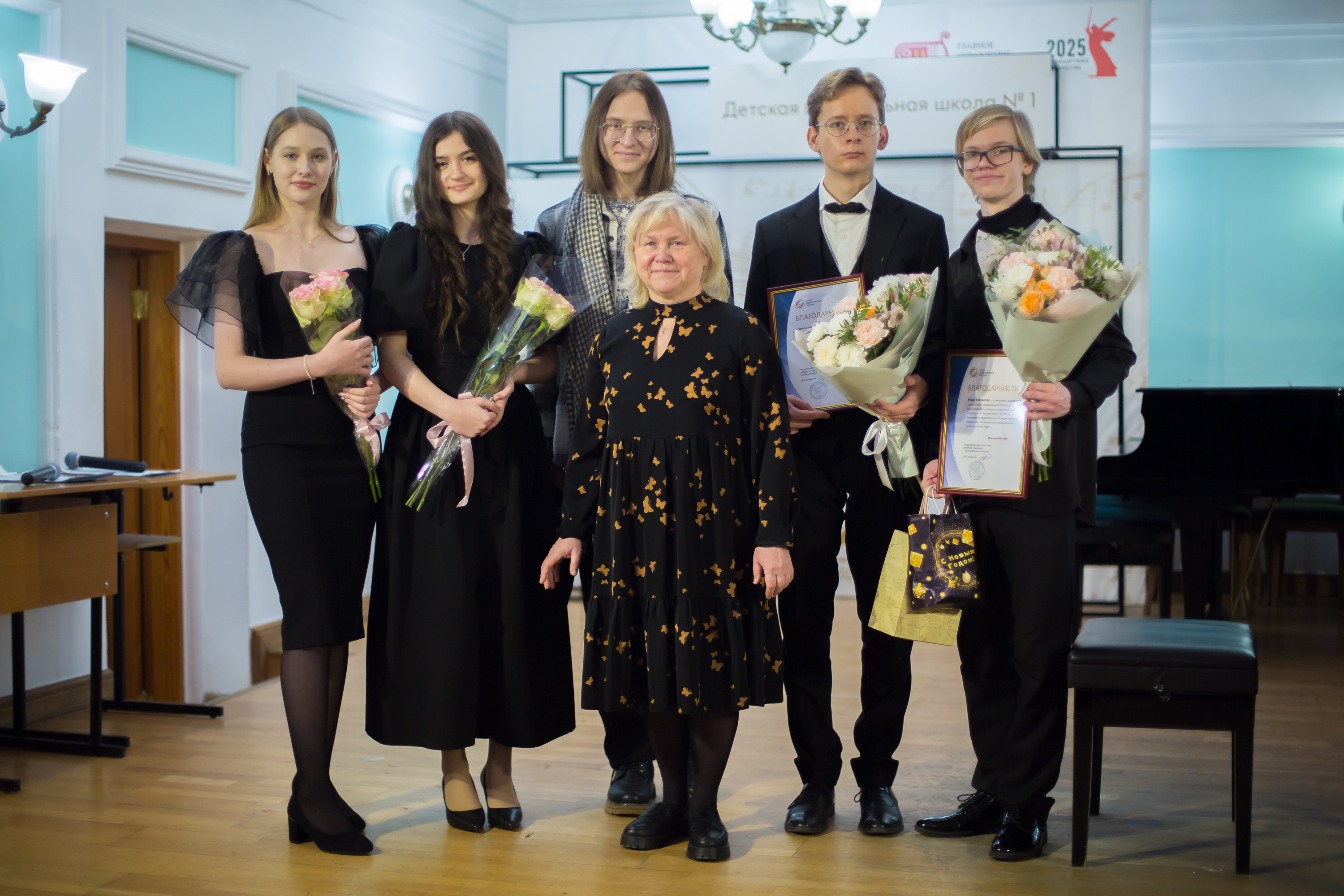 Ветеран краевой журналистики Людмила Михайловна Вахменина, которая в 90-е годы была главным редактором краевого телевидения (к слову сказать, племянница педагога Дмитрия Хворостовского Екатерины Иофель), подарила молодым музыкантам биографию и нотные тетради с произведениями советского композитора Якова Рассина – мужа Екатерины Константиновны Иофель.